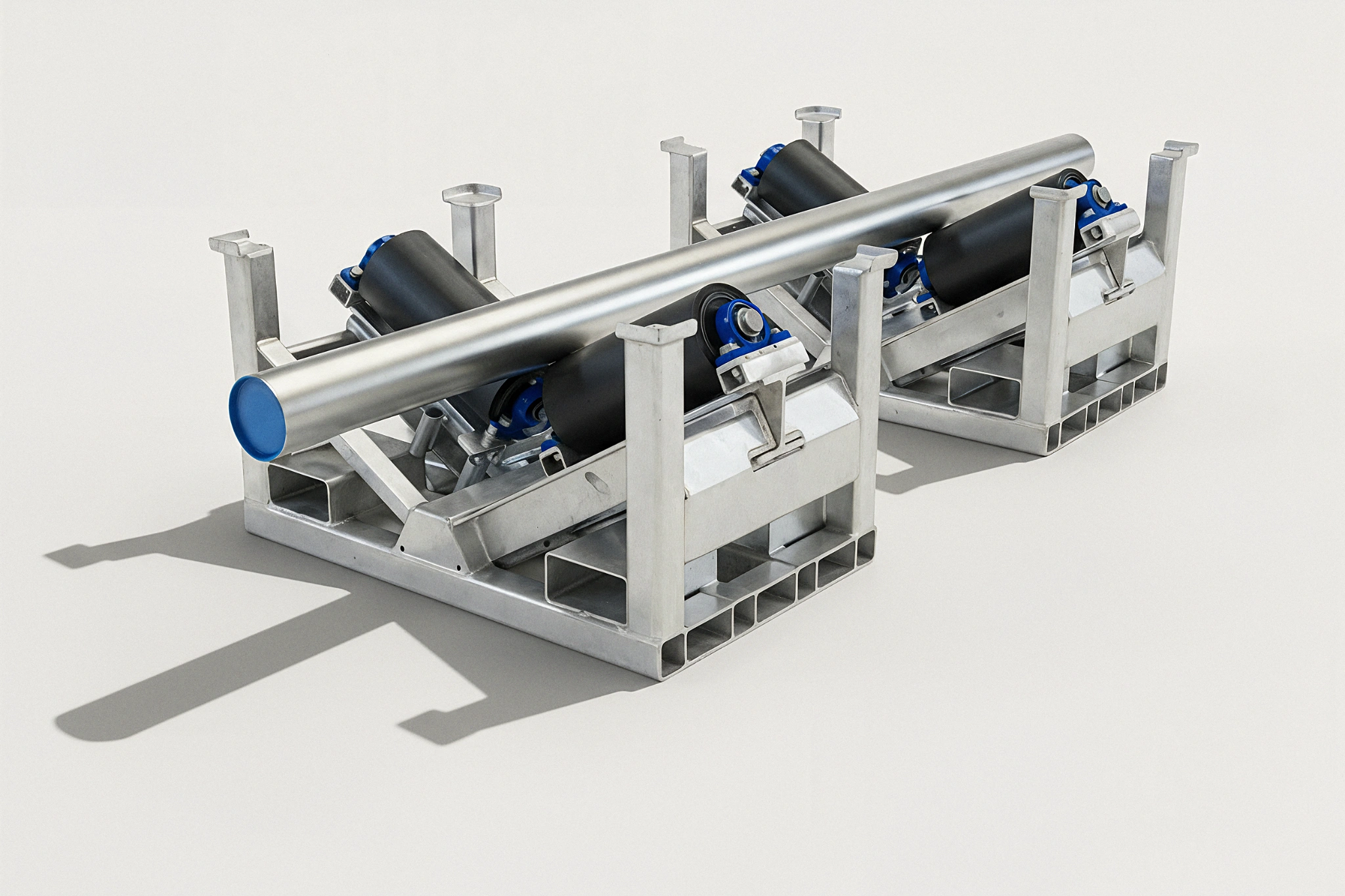 Waßmann HDD Pipe Roller für Rohrverlegung im Horizontalspülbohrverfahren (HDD), Pipelinebau und klassischen Tiefbau. Ausgelegt für hohe Belastungen, raue Einsatzbedingungen und universelle Rohrdimensionen.