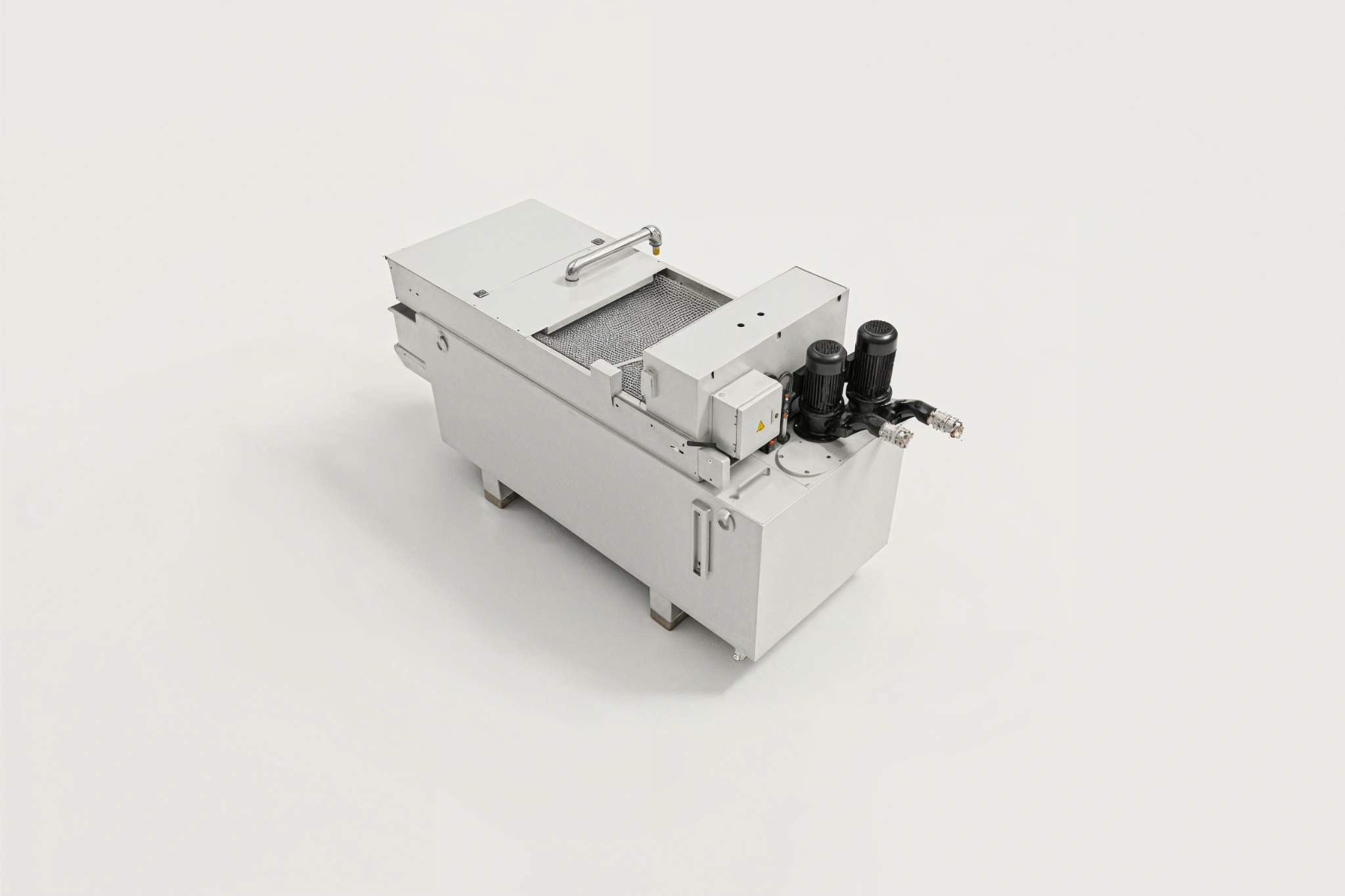 Waßmann Bandfilteranlage zur kontinuierlichen Filtration von Kühlschmierstoffen (KSS), Schneidemulsionen und Industrieölen. Ausgelegt für Fertigungsbetriebe mit hohem Kühlmittelumsatz und Anforderungen an stabile Prozesssicherheit.